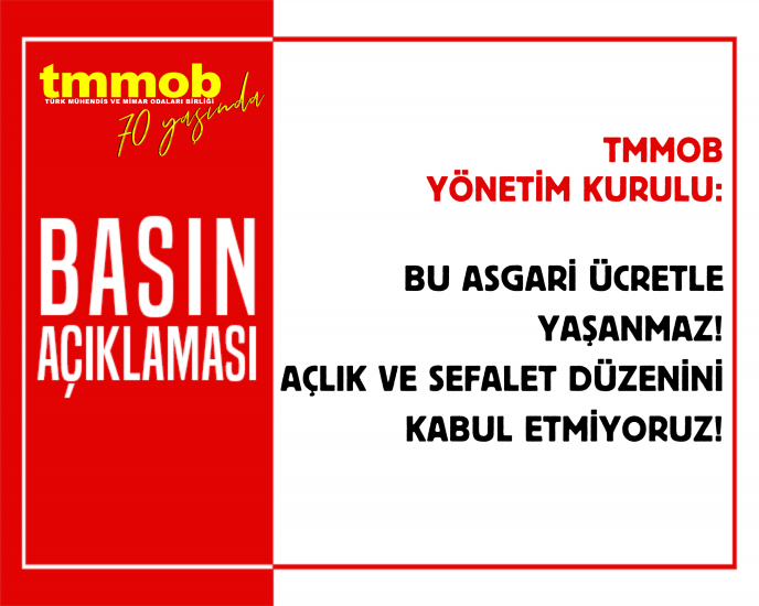 TMMOB Yönetim Kurulu, açıklanan 2025 yılı asgari ücreti üzerine 26 Aralık 2024 tarihinde “Bu Asgari Ücretle Yaşanmaz! Açlık ve Sefalet Düzenini Kabul Etmiyoruz!” başlıklı bir basın açıklaması yaptı.