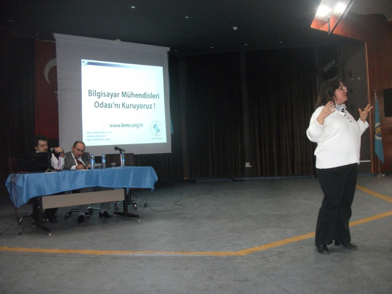 21 Aralık 2011 Çarşamba günü, Konya Selçuk Üniversitesi’nde EMO Ankara Şubesi Bilgisayar Mühendisliği Meslek Dalı Komisyonu üyeleri Gölay Şakiroğulları, Mustafa Özlü ve Oktay Dursun’un katılımlarıyla bilgisayar mühendisliği öğrencilerine yönelik etkinlik gerçekleştirildi. Etkinlik öncesi Bilgisayar Mühendisliği Bölüm Başkanı Prof. Dr. Ahmet Aslan ile bir araya gelen temsilciler, odalaşma sürecinde akademisyenlere önemli bir rol düştüğünü belirterek, oda kurulduktan sonra gerçekleştirilecek ortak çalışmaların önemini belirttiler. Prof. Dr. Arslan’ın destek sözü sonrası etkinliğe geçildi. Bilgisayar mühendisliği, bilişim sektörü hakkında verilen bilgiler sonrası, bugün Bilgisayar Mühendisleri Odası’nın neden bir ihtiyaç olduğunun tartışıldığı etkinlikte, TMMOB, EMO, meslek odaları ve BMO için yapılan çalışmalar hakkında bilgi verilerek, öğrencilerin yarının meslektaşları olarak bu sürece aktif katılımı ve desteğinin önemi vurgulandı.