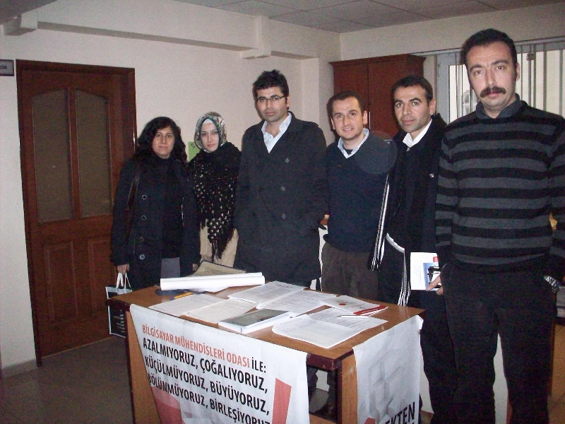 EMO Bilgisayar Mühendisliği Meslek Dalı Ana Komisyonu adına Taylan Özgür Yıldırım ve Serdar Çiftçi katılarak stand açtığı Genel Kurul süresince, EMO Diyarbakır Şubesi üyesi bilgisayar mühendisleriyle de bir araya gelindi. “Bilgisayar Mühendisleri Odası kurulmasının EMO Genel Kurulu’na taşınması, EMO ve TMMOB Genel Kurulu iradesi doğrultusunda Bilgisayar Mühendisleri Odası’nın kurulması” önergesi, EMO Diyarbakır Şubesi üyesi bilgisayar mühendisleri Zeynep Ebru Oğuz, Mahfuz Dasci, Hikmet Dasci ve Leyla Artuk’un imzasıyla divana sunuldu.