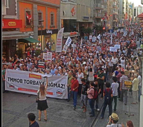 Siyasi iktidarın, gece yarısı operasyonu ile TMMOB’ ye yaptığı saldırıyı ve Taksim Gezi Parkı direnişine destek verdikleri için TMMOB yöneticilerine, aktivistlerine yapılan gözaltıları protesto etmek için başta Ankara ve İzmir olmak üzere, Türkiye’nin farklı illerinde protestolar düzenlendi. Ankara’da 10 Temmuz 2013 Çarşamba günü TMMOB önünde buluşan TMMOB yöneticileri, üyeleri, demokratik kitle örgütleri, sendikacılar Çevre Şehircilik Bakanlığı’na siyah çelenk bırakarak, AKP iktidarının korsan TMMOB yasasını protesto ettiler.