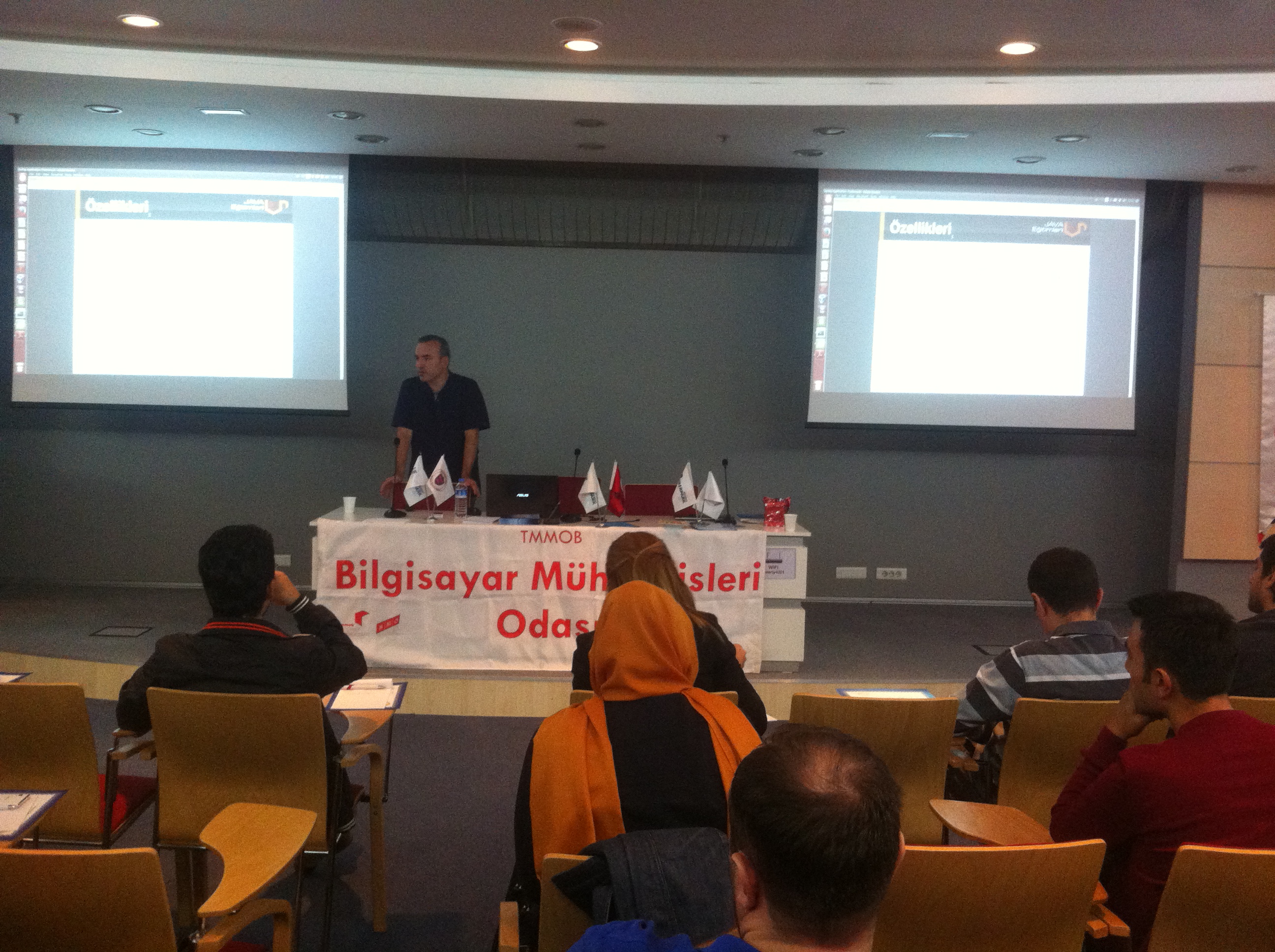 • JSF ile ilgili eğitim veren eğitmenimiz Oğuz Aslantürk; hem teorik hem de pratik olarak tecrübeli idi. Yüksek Lisans ve doktorasını Hacettepe Bilgisayar Mühendisliğinde tamamlayan Oğuz Bey, Hacettepe ve Başkent Üniversitelerinin Bilgisayar Mühendisliği Bölümlerinde C, C++, Java, Yazılım Mimarileri, Proje Yönetimi derslerini vermiş bunun yanında özel sektör ve kamu kurumlarında birçok yazılım geliştirme personeline Temel ve Kurumsal Java Teknolojilerine ilişkin eğitim ve danışmanlık hizmetleri vermişti. Eğitim soru-cevap şeklinde verimli bir şekilde tamamlandı.