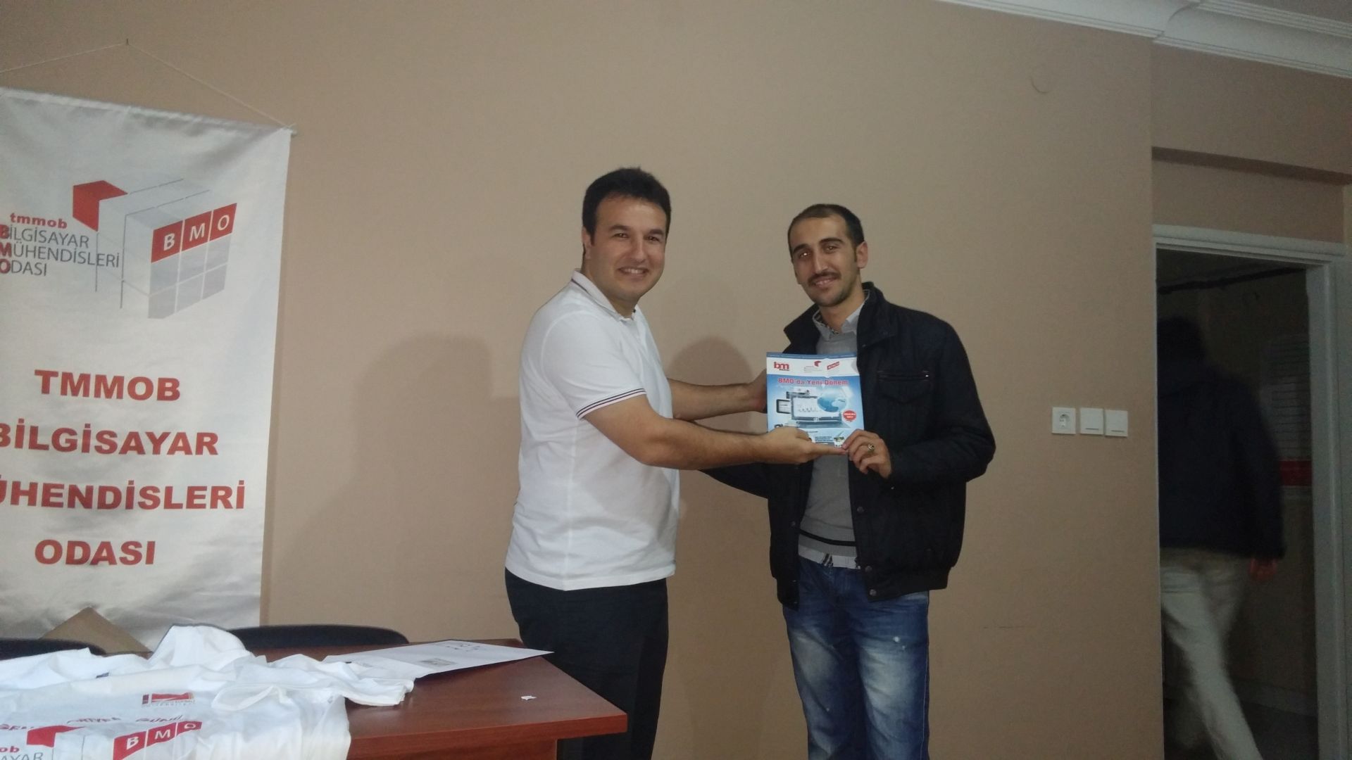 Öğrencilerimizden şanslı kişilere Tişört hediye edildi. Sayılı çıkan dergimizi öğrenicilere rehberlik eden Araştırma Görevlisi Hakan bey’e ve Bölüm Başkanı Cihan Karakuzu hocamıza verilmek üzere yeni BMO Dergimiz hediye edildi.Toplu fotoğraf çekiminden sonra Kariyer Günü etkinliği sonlandırılmıştır.