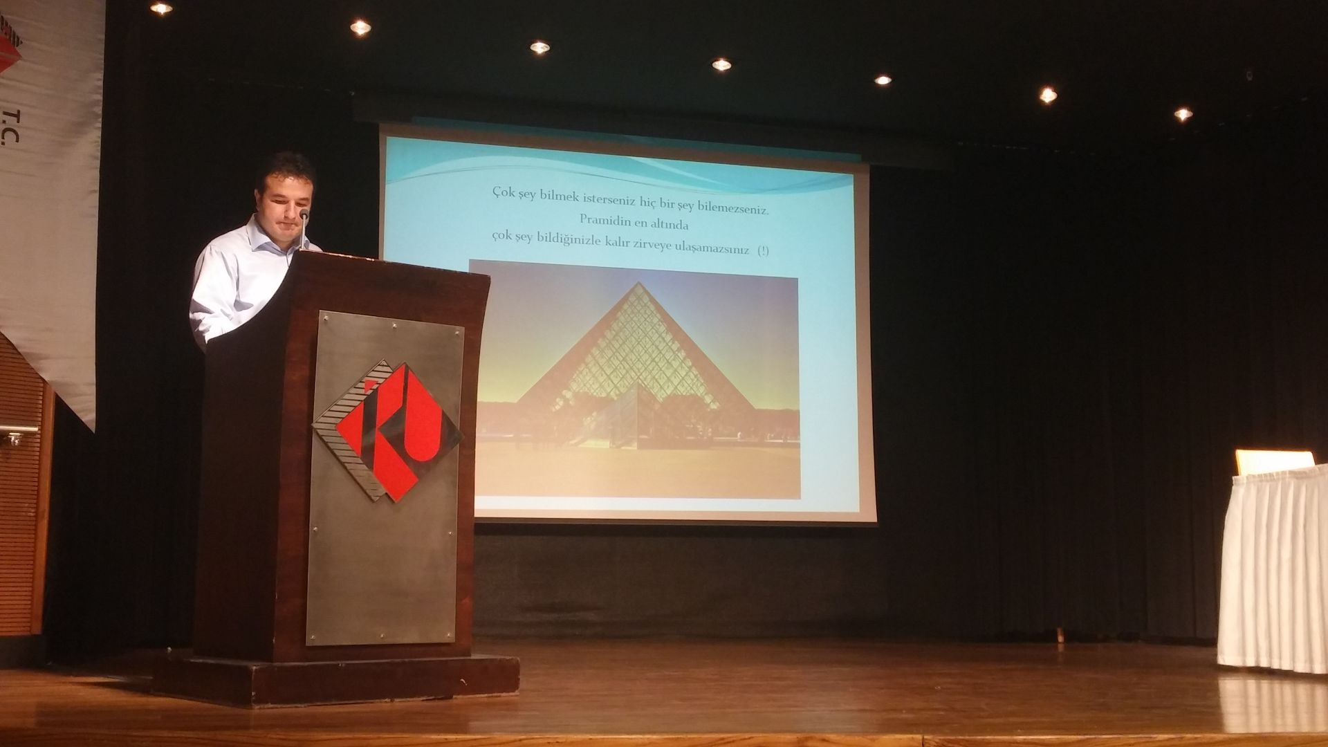 Genel Sekreter. Yrd.Doç.Dr. Ethem TARHAN bey’in katıldığı etkinliğe meraklı ve bilinçli öğrencilerin ilgisi bizi heyecanlandırdı.Ethem TARHAN hocamızın plaket takdiminden sonra bizde kendisine yeni dergimizi hediye edildi. Aynı zamanda Bil.Müh. Bölüm başkanı Prof. Dr. Hasan DİNÇER hocamıza verilmek üzere BM dergimizi hediye takdim ettik.