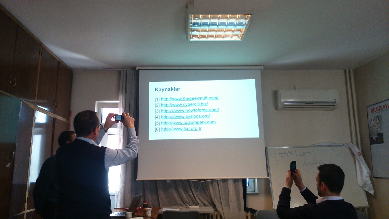 Daha sonra eğitimcimiz Mücahid Yardım tarafından iki gün boyunca  10:30- 16.30 saatleri arasında   Linux eğitimi  verildi.