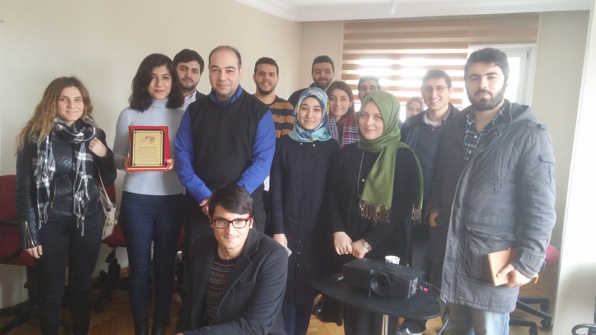 Bizi kırmayıp davetimizi kabul eden hocamıza günün anısına plaket takdim edildi.