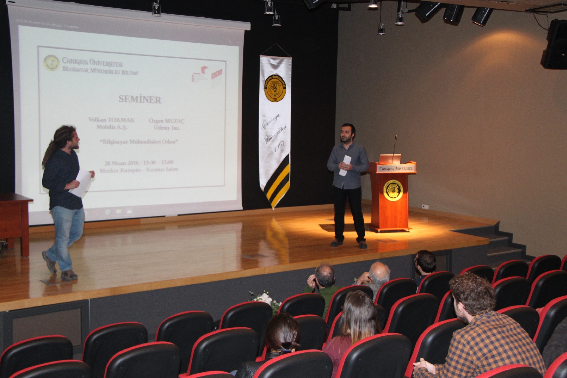 26 Nisan 2016 Salı günü, Çankaya Üniversitesi’nde Oda ve meslek tanıtım sunumu gerçekleştirildi. BMO Yönetim Kurulu Üyesi Özgen Muzaç ve Yönetim Kurulu Yedek Üyesi Volkan Tokmak’ın konuşmacı olduğu etkinlikte, mühendislik, meslek hayatı ve meslek odası hakkında bilgilendirme yapıldı. Bölüm başkanı Prof. Dr. Müslim BOZYİĞİT’in de söz alarak, meslek odasının önemi hakkında bilgi verdiği oturuma, öğrencilerin yanı sıra Yrd. Doç. Dr. Abdül Kadir GÖRÜR ve Uzman Efe ÇİFTÇİ de katıldı.