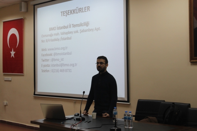 07.12.2016 tarihinde İstanbul Üniversitesi Bilgisayar Kulübü tarafından düzenlenen Bilfest Etkinliği kapsamında meslektaş adaylarımızla  bir araya gelerek; kendilerine bilgisayar mühendislik eğitiminin disiplini, bölüm mezunlarının çalışabileceği alanlar , oda üyeliği ve kuruluş aşamaları hakkında BMO yönetim kurulundan Utku Altan ve İstanbul Temsilciliğinden Ezgi Efe tarafından bilgi verildi. Seminerin sonunda öğrencilerin görüş ve önerileri alınarak ; BMO Genç üyesi olmak isteyenler için üyelik kaydı alındı.