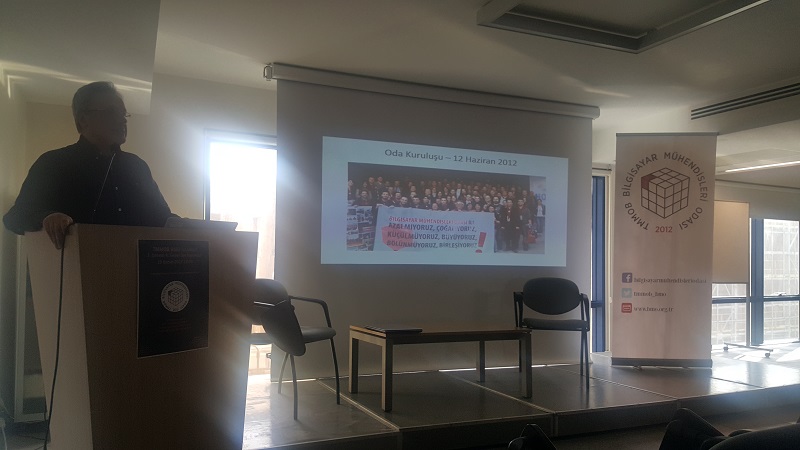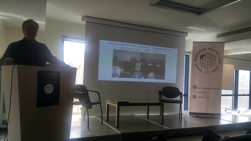 Bilgisayar Mühendisleri Odası İstanbul Temsilciliği’nin düzenlediği 4. Genel Üye Toplantısı; 26.02.2017 tarihinde Mimarlar Odası Karaköy şubesinde gerçekleştirildi. İki oturum şeklinde gerçekleştirilen toplantının ilk oturumunda BMO Yönetim Kurulu’ndan Ümit Ateş ve İstanbul Temsilciliğinden Ezgi Efe tarafından BMO ve Temsilcilik faaliyetleri, Temsilcilik mali durumu, komisyon çalışmaları ve planlanan faaliyetler konusunda bilgilendirme yapıldı. İkinci oturumda ise oda kurucularımızdan Arif Cevizci tarafından bir sunum yapıldı. Arif Cevizci sunumunda oda kuruluş süreçlerini ve o dönemde yapılan çalışmalarla ilgili birikimlerini aktardı.
