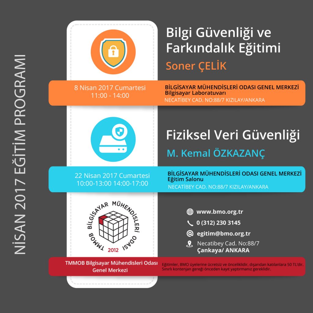Nisan ayında Bilgisayar Mühendisleri Odası Genel Merkezi’nde düzenlenecek eğitimler, veri güvenliği odaklı olarak hazırlandı.
