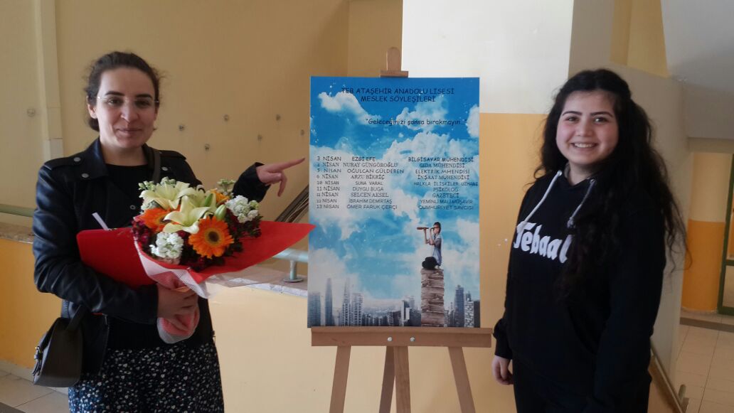 3 Nisan 2017 tarihinde Teb Ataşehir Anadolu Lisesi öğrencileriyle, Kariyer Günleri’nde bir araya gelerek bilgisayar mühendisliğini konuştuk. Öğrencilerin yoğun katılımıyla gerçekleştirilen seminerde; teknolojinin nasıl ilerlediği, bilgisayar biliminin önemi ve diğer bilim dallarıyla bağlantısı anlatıldı. Sınavlara hazırlanırken nasıl bir yöntem izlenebileceği, ilgi ve merakın nasıl öldürülmeden geleceğe taşınabileceği konusunda fikir alış verişinin yapıldığı seminerin sonunda ; BMO İstanbul İl Temsilcilerinden Ezgi Efe’ye katılımı için plaket verildi.