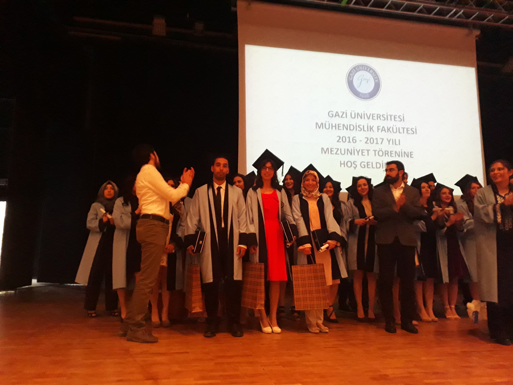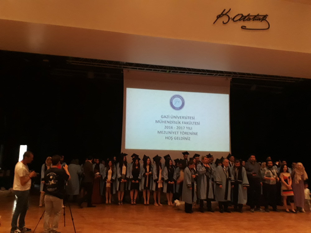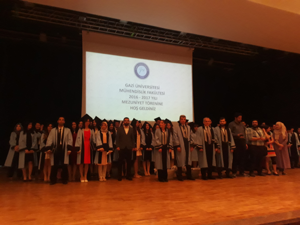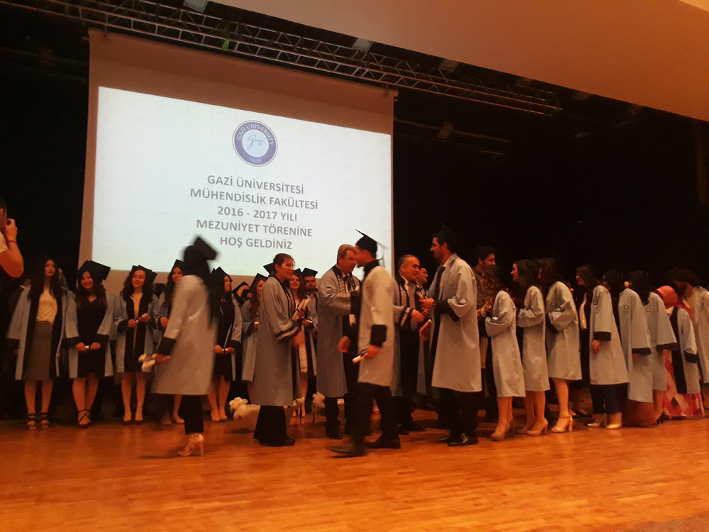 Gazi Üniversitesi, Mühendislik Fakültesi’nin düzenlemiş olduğu mezuniyet töreni MEB Şura salonunda gerçekleştirilirken, törene Mühendislik Fakültesi öğrencileri, öğrencilerin aileleri ve davetlilerin yoğun katılımı oldu. Saygı duruşu ve Gazi Üniversitesi Rektörü Prof. Dr. İbrahim Uslan’ın konuşmasıyla açılan tören bayrak devri ve fakülte birincisinin konuşmasıyla devam etti.