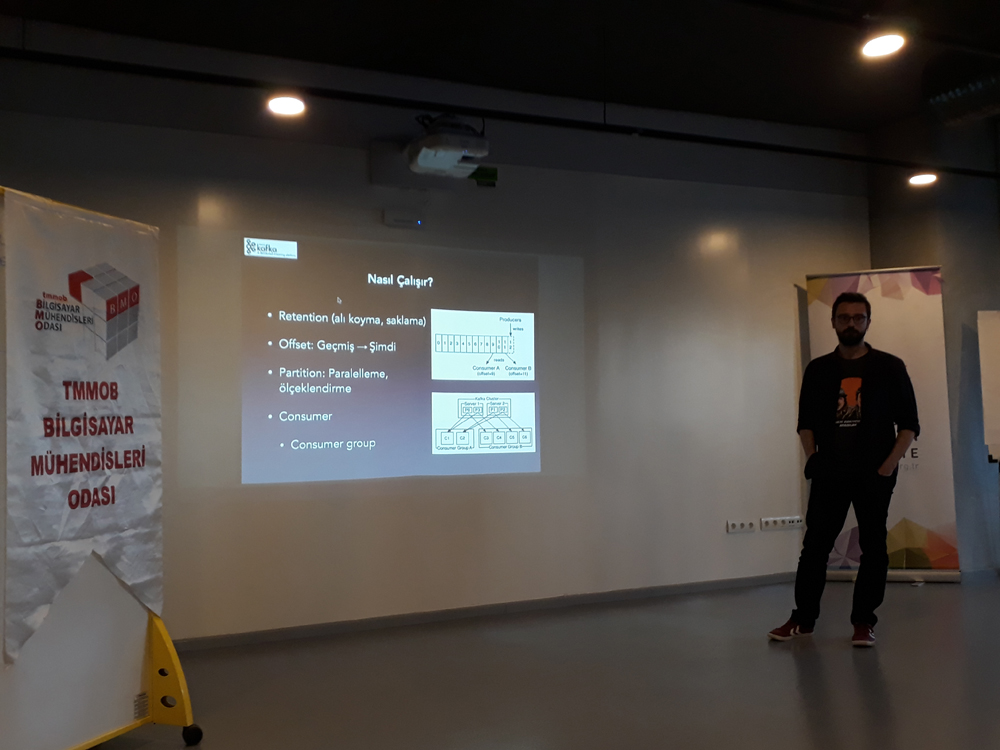 23 Mayıs Salı günü Cyberpark Kıvılcım salonunda son yıllarda kullanımı oldukca yaygınlaşan “Apache Kafka Dağıtık Akış Platformu”na giriş sunumu Emre BAYKAL’ın katkıları ile gerçekleştirildi. Sunumda Apache Kafka’nın ne olduğu, yapısı, kullanım alanları ve nasıl kullanıldığı üzerine değinilirken, sunum sonunda soru ve cevaplarla dinleyecilerin ilgisini çektiği gözlendi.