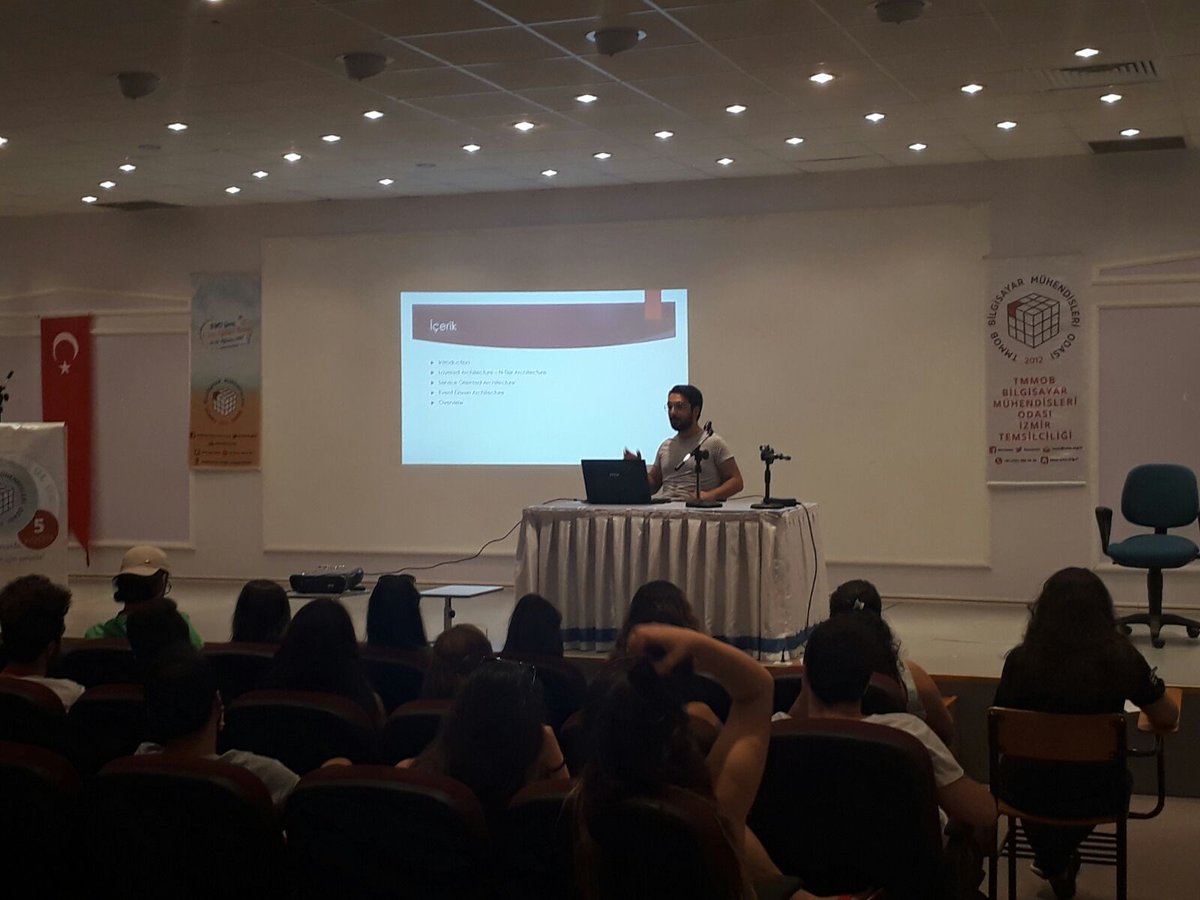 Eğitim programı ilk gün Özgür Deniz GÜNSELİ’nin “Software Architecture Patterns” başlıklı eğitim ile başladı. Deneyim paylaşımları olarak planlanan akşam sohbetlerinde ilk akşam İzmir Büyükşehir Belediyesi Bilgi İşlem Daire Başkanı Güler SAĞIT ve BMO 3. Dönem Denetleme Kurulu üyesi M.Özgür UĞUR “Kamu ve Özel Sektörde Mesleğimiz” konulu bir söyleşi gerçekleştirdiler, bilgisayar mühendislerinin çalışma hayatındaki durumunu ve kendi tecrübelerini paylaştılar.