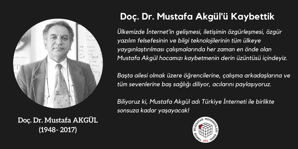 Ülkemizde İnternet’in gelişmesi, iletişimin özgürleşmesi, özgür yazılım felsefesinin ve bilgi teknolojilerinin tüm ülkeye yaygınlaştırılması çalışmalarında her zaman en önde olan, sayısız girişime ve etkinliğe öncülük etmiş Mustafa Akgül hocamızı kaybetmenin derin üzüntüsü içindeyiz.