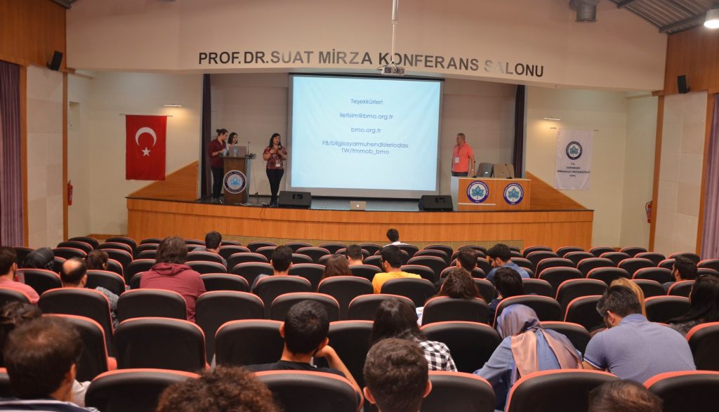 Etkinlik kapsamında 29 Nisan 2018’de yapılan BMO Tanıtımında Hüseyin YEŞİLSEVEN ve Ezgi PEKŞEN SOYSAL, TMMOB ve Bilgisayar Mühendisleri Odasının amaç ve çalışmaları, bilgisayar mühendisliğinin ülkemizdeki tarihi ve mesleğin gelişmesine ilişkin bilgi vererek gençlerin sorularını yanıtladılar.