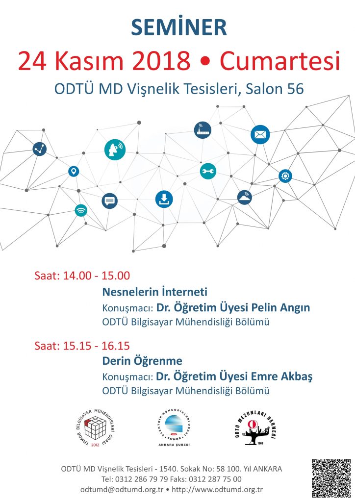 Seminer, Bilgisayar Mühendisleri Odası, Elektrik Mühendisleri Odası Ankara Şubesi ve ODTÜ Mezunları Derneği işbirliğiyle 24 Kasım 2018 Cumartesi günü ODTÜ Bilgisayar Bölümü Öğretim Üyelerinin katkılarıyla ODTÜ Mezunları Derneği Vişnelik Tesisleri Salon 56’da, saat 14.00 – 16.30 saatleri arasında düzenlenecektir.
