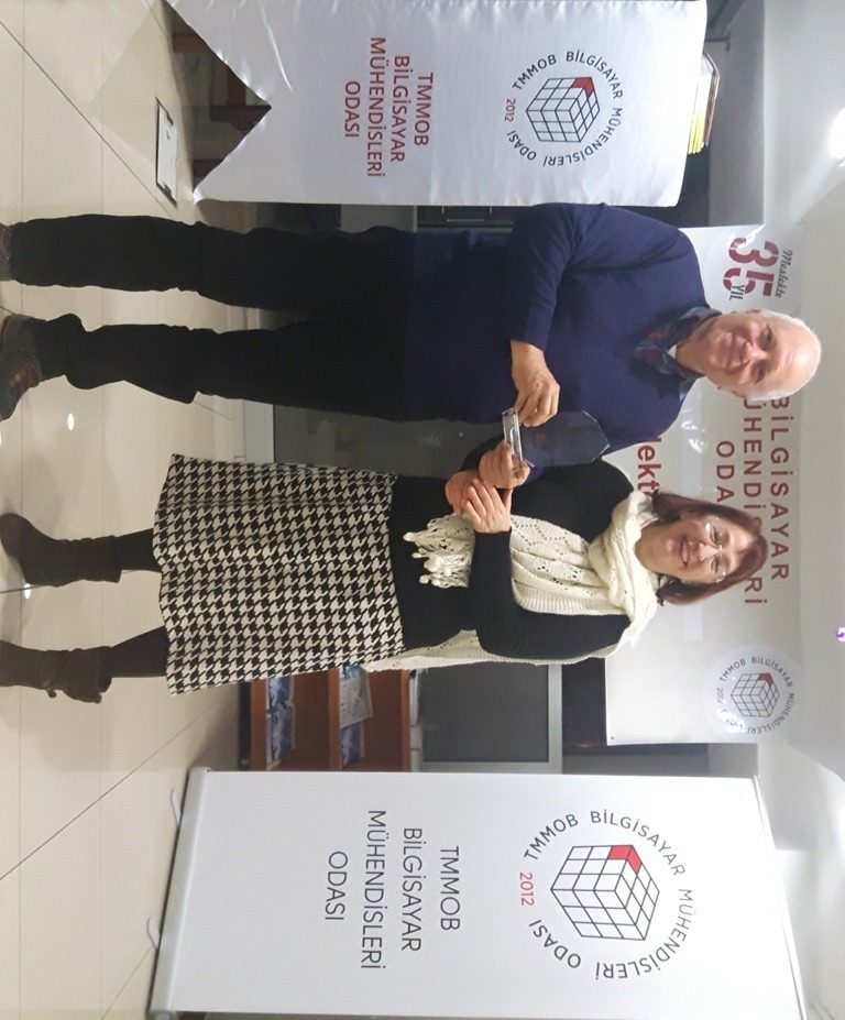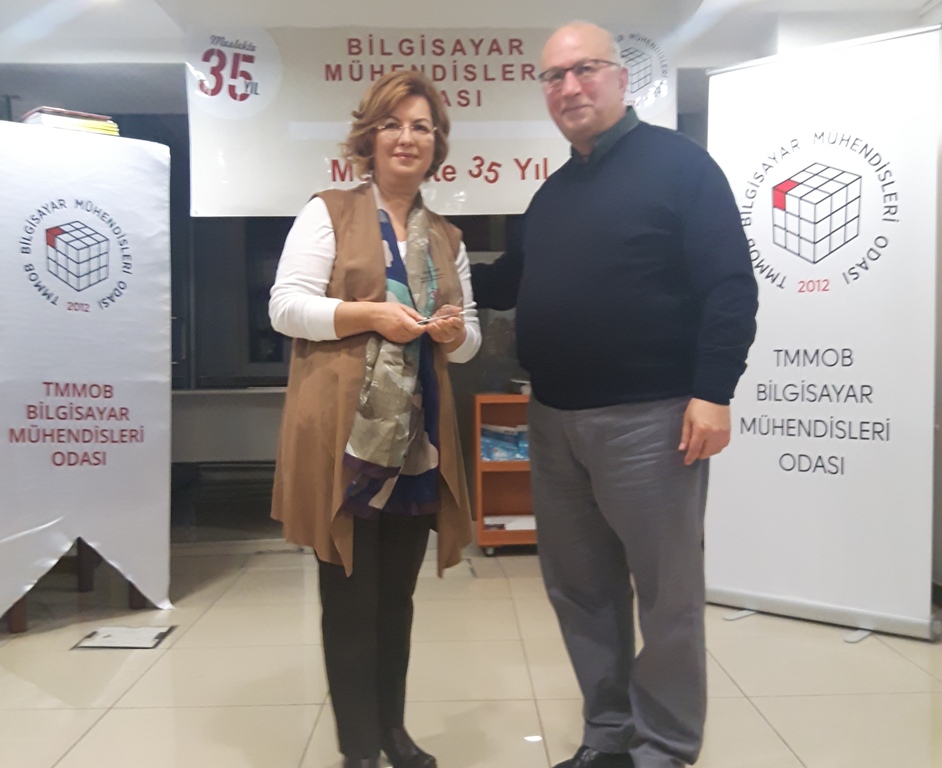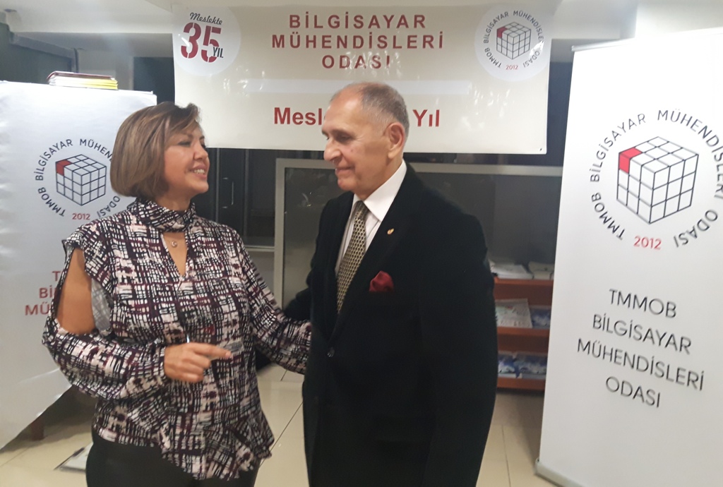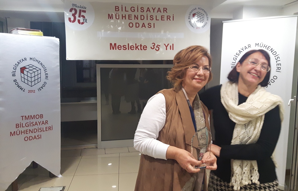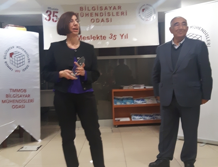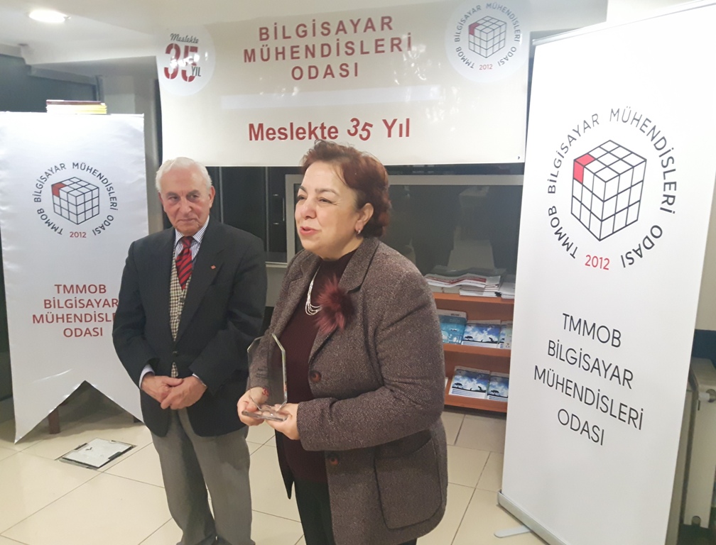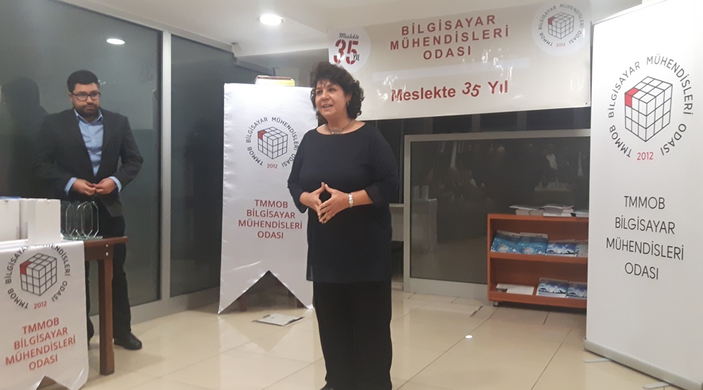 BMO Yönetim Kurulu Başkanı Hülya KÜÇÜKARAS, etkinliğin açılışında yaptığı konuşmayla konuklara teşekkür ederek şunları söyledi: “Meslekte 35 yılını dolduran üyelerimiz, ülkemizde bilgisayar mühendisliği lisans eğitimini başlatan üniversitelerimizin ilk mezunları. ‘İlk’ olmak, hem genç yaşta büyük bir sorumluluğu yüklenerek örnek oluşturmak için çalışmak anlamını taşıyordu, hem de deneyimsiz ve yalnızdık. Zorlukları öğretmenlerimizin desteğiyle göğüsledik; bugüne dek de öğretmenlerimizden hiç kopmadık. Öte yandan bizlerden önce bilişim kesimine emek veren deneyimli meslektaşlarımız bizlere hep yol gösterip bizleri sahiplendiler; buradan onlara sonsuz teşekkürlerimizi gönderiyoruz. Biz ‘ilk’ler, kısıtlı olanaklara karşın hiç yakınmadan çalışırken gücümüzü mesleğimize ve ülkemize beslediğimiz sevgiden aldık. Tutkuyla, sevgiyle üretmeyi de sürdürüyoruz.”