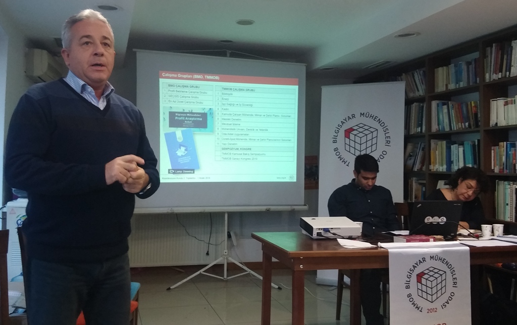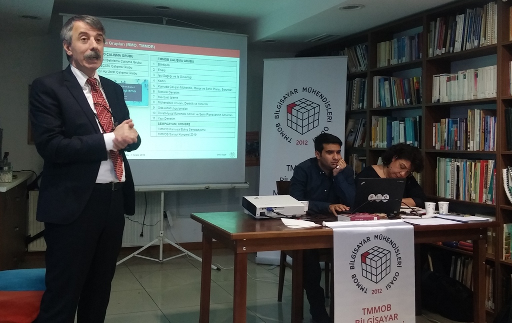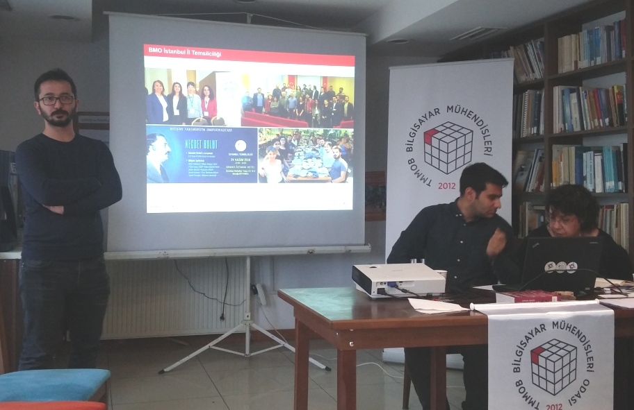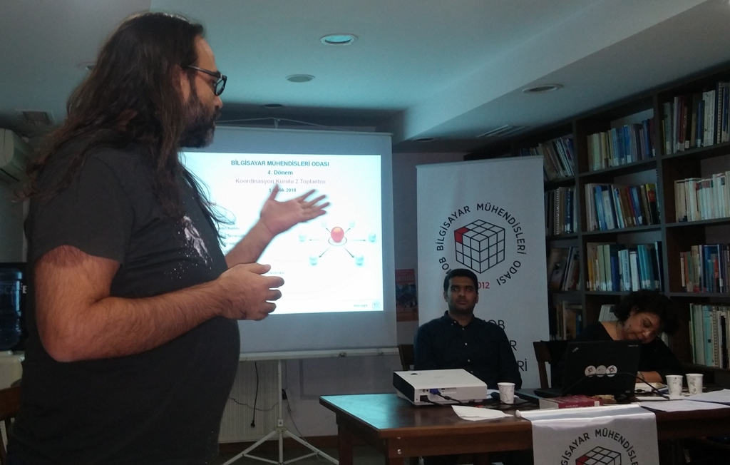 Bilgisayar Mühendisleri Odası 4. döneminin ikinci Koordinasyon Kurulu toplantısı, 1 Aralık 2018 Cumartesi günü Elektrik Mühendisleri Odası kütüphanesinde gerçekleştirildi. BMO Koordinasyon Kurulu Yönergesine göre Yönetim, Denetleme, Onur ve İl Temsilcilik Kurulları üyeleri, İl Temsilcileri, komisyonların yürütücüleri ve çalışma grubu temsilcilerinden oluşan kurulun toplantısı, BMO Yönetim Kurulu Başkanı Hülya KÜÇÜKARAS’ın konuşmasıyla başladı. Konuşmasında Mart-Kasım 2018 ayları boyunca gerçekleştirilen başlıca çalışmalara ve kamuoyuna yönelik açıklamalara ilişkin bilgi veren Küçükaras, 2019’da yapılacak Bilgisayar Mühendisliği Öğrencileri Kongresi (BİLMÖK) ve Bilgisayar Mühendisleri Kurultayı (BMK’19) hazırlıklarından söz ederek üyelerin ve komisyonların katkılarını beklediklerini söyledi.