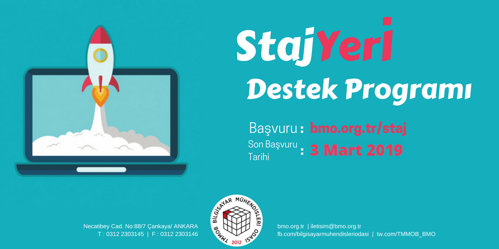 Bilgisayar Mühendisleri Odasının, BMO Ana Yönetmeliğinde tanımlı amaçlar ve 4. Dönem Çalışma Programı doğrultusunda uygulamaya geçirdiği “StajYeri Destek Programı”na 2019 yılı için başvurular başladı.