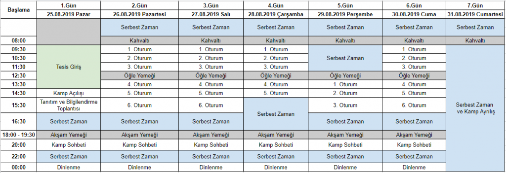 Yaz Kampında aşağıdaki konularda eğitimler verilecektir. Oturumlar eşzamanlı (paralel) olmayıp tüm katılımcılar aynı eğitimleri alacaktır.