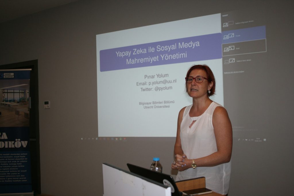 Açılışın ardından Utrecht Üniversitesi öğretim üyesi Prof. Dr. Pınar YOLUM, “Yapay Zekâ ile Sosyal Medyada Mahremiyetimizi Nasıl Koruruz?” başlıklı konuşmasıyla düşüncelerini ve önerilerini atölye katılımcılarıyla paylaştı. Kadıköy Belediyesinden Şehir Plancısı Batuhan AKKAYA da “İDEA: Kamusal Ortak Çalışma ve Ortak Üretim Alanı Modeli” üzerine bir sunum gerçekleştirdi. Günün son oturumunda ise Yazılım Mühendisi Batuhan DÜZGÜN Yapay Zekâ, Makine Öğrenmesi, Derin Öğrenme vb. kavramlar üzerine bir konuşma yaptı.