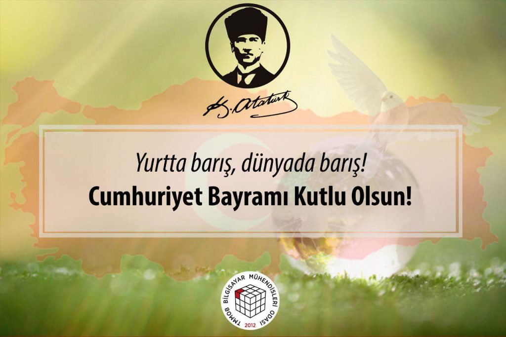 Bizler, bu ülkenin bilgisayar mühendisleri olarak Cumhuriyeti kuranların “Yurtta barış, dünyada barış” ilkesinden bir adım sapmadan, savaşa karşı her zaman barışı savunarak bu değerli bayramı kutluyoruz.