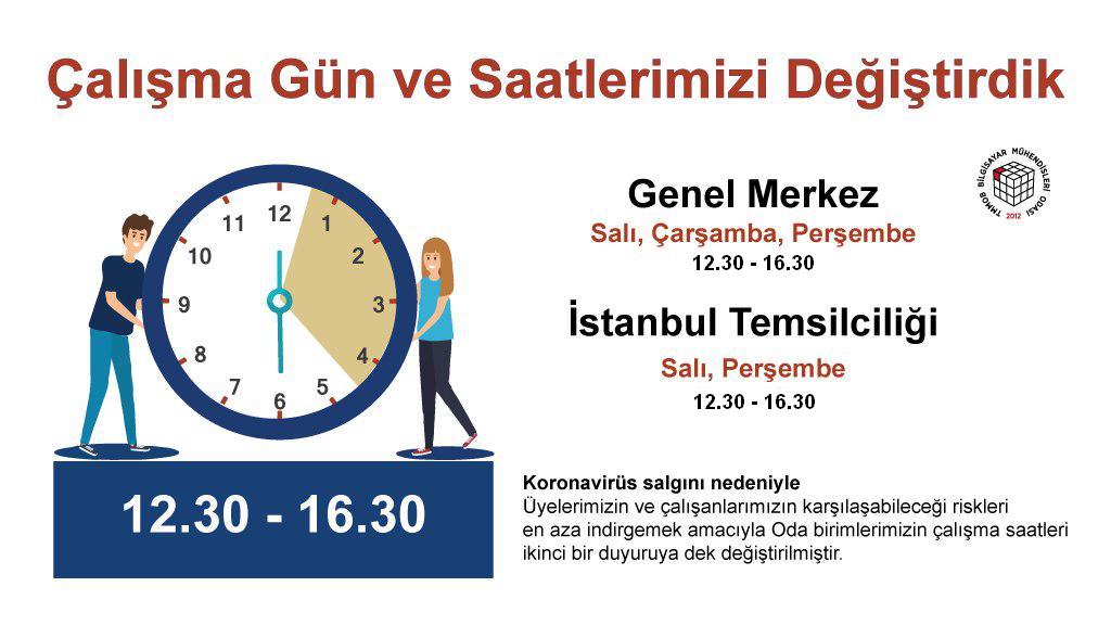 Oda birimlerimizin çalışma gün ve saatleri 17 Mart 2020 Salı gününden başlayarak ikinci bir duyuruya dek aşağıdaki gibi olacaktır: