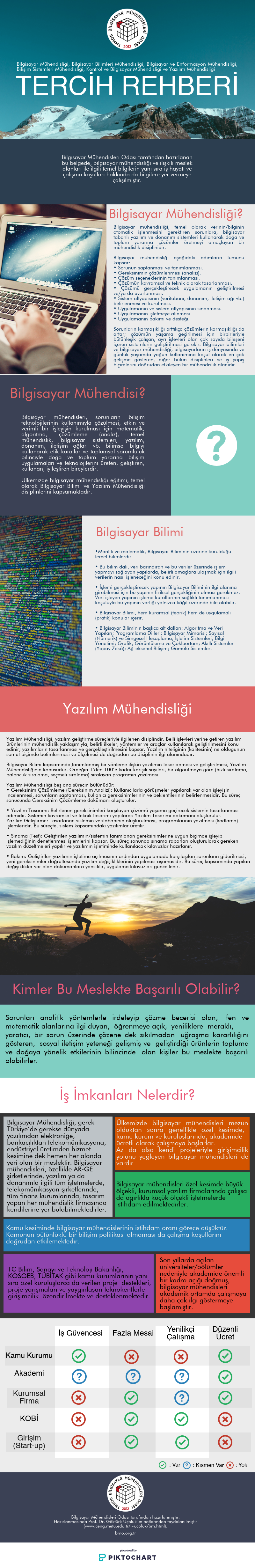 Bilgisayar Mühendisleri Odası tarafından, Bilgisayar Mühendisliği, Bilgisayar Bilimleri Mühendisliği, Bilgisayar ve Enformasyon Mühendisliği, Bilişim Sistemleri Mühendisliği, Kontrol ve Bilgisayar Mühendisliği ve Yazılım Mühendisliği bölümlerini tercih etmek isteyen üniversite adaylarına yönelik olarak hazırlanmış mesleki tanıtım infografiği güncellendi. Bilgisayar mühendisliği eğitimi, çalışma alanları, kapsamı ve iş hayatı hakkında detaylı bilgi içeren infografik, adayları meslek hakkında kapsamlı olarak bilgilendirerek kendileri için en doğru tercihi yapmalarına yardımcı olmak üzere yeniden yayımlandı. Odamızın YouTube kanalındaki videolardan da yararlanabilirsiniz. YouTube kanalımız için https://www.youtube.com/bilgisayarmuhendisleriodasi