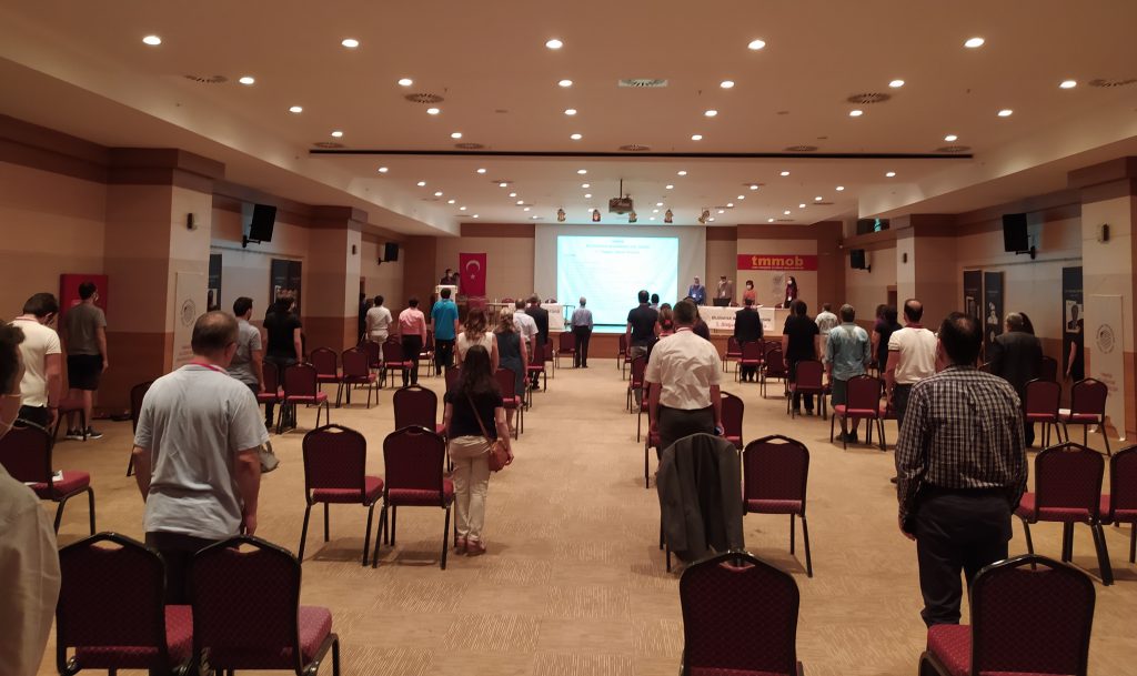 Kovid-19 salgını koşullarında, konuk ve delegelerimizin güvenli uzaklık ve sağlık önlemlerine gösterdikleri özenle başarıyla gerçekleştirilen genel kurulu, BMO 4. Dönem Yönetim Kurulu Yazman Üyesi Uğur KOCAGER açtı. Genel kurulumuzu, delegelerimizin oybirliğiyle seçilen Mutlu PAYASLIOĞLU (başkan), Sadık NAZİK (başkan yardımcısı) ve yazmanlar Betül ALTINDİŞ TÜRKMEN ile Merve TAPLI‘dan oluşan başkanlık divanı yönetti. BMO 4. Dönem Yönetim Kurulu Başkanı Hülya KÜÇÜKARAS‘ın açış konuşmasıyla başlayan genel kurul, TMMOB Yönetim Kurulu Başkanı Emin KORAMAZ‘ın konuşmasıyla sürdü.