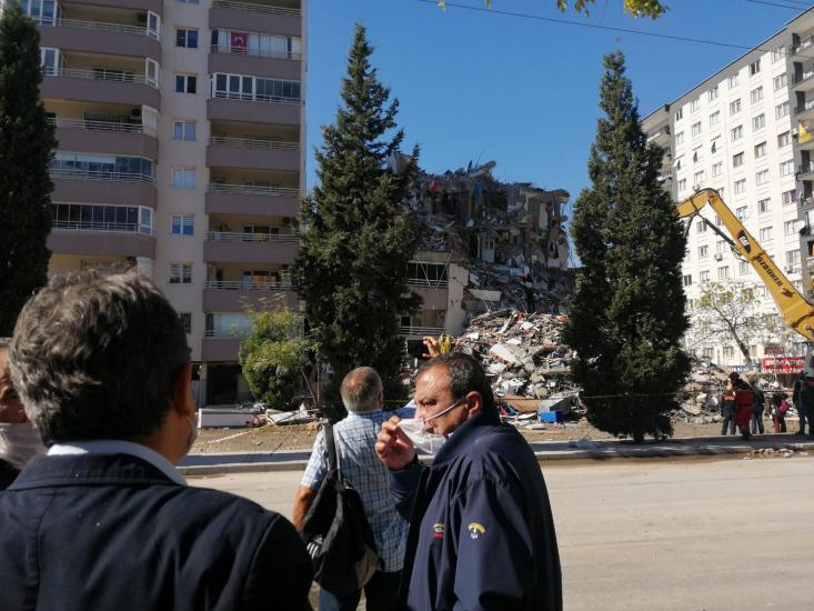Aralarında TMMOB Yönetim Kurulu Başkanı Emin Koramaz ile Odamız Yönetim Kurulu Başkanı Ali Rıza Atasoy’un da bulunduğu TMMOB Heyeti 1-2 Kasım 2020 tarihlerinde İzmir deprem bölgesinde incelemelerde bulundu. Odamız İzmir Temsilcilik Kurulu üyesi Barış Özel, TMMOB İzmir İl Koordinasyon Kurulu bileşenleriyle birlikte heyete eşlik etti.