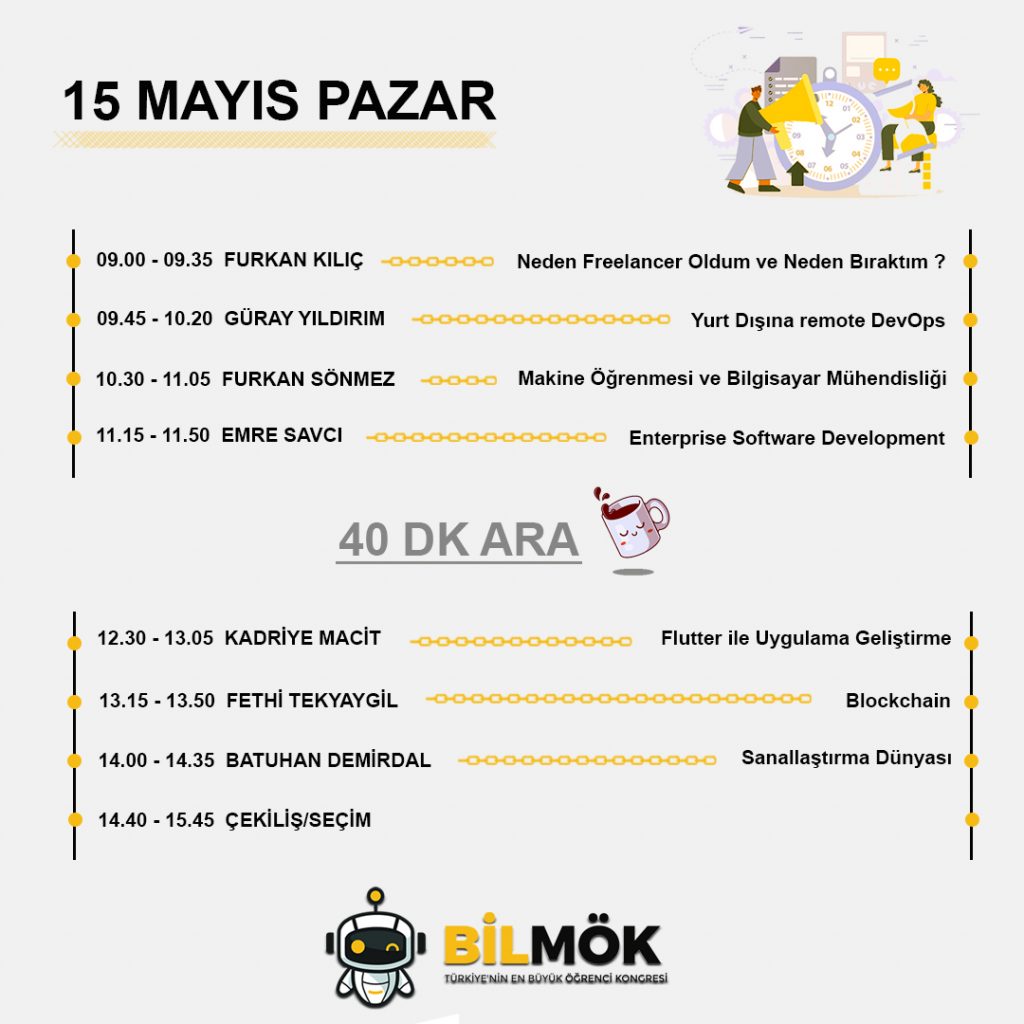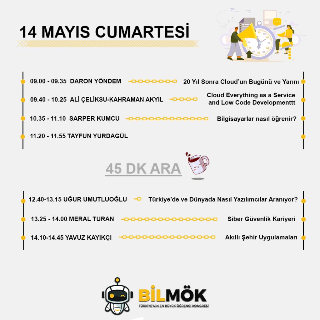18. Bilgisayar Mühendisliği Öğrencileri Kongresi (BİLMÖK) 13-14-15 Mayıs 2022 günlerinde Konya Teknik Üniversitesi ev sahipliğinde gerçekleştiriliyor. Bilgisayar Mühendisleri Odası Yönetim Kurulu Başkanı Cem Nuri Aldaş açılış konuşmasından sonra ilk konuşmacı olarak etkinlikte yer alacak. Etkinliğin ilk iki günü boyunca BMO standımızda genç mühendis adaylarıyla buluşacağız.