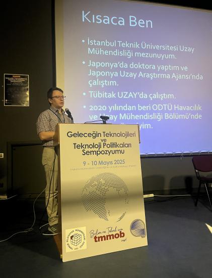 Sempozyumun ikinci günü ise Orta Doğu Teknik Üniversitesi Havacılık ve Uzay Mühendisliği Bölümü akademisyenlerinden Doç. Dr. Halil Ersin SÖKEN ve Türk Hava Kurumu Üniversitesi Uçak Mühendisliği Bölümü akademisyenlerinden Dr. Mehmet Ali AK`ın sunumlarıyla başladı. Uydu ve uzay teknolojilerinin odak noktası olduğu bu oturumun ilk konuşmacısı olan Doç. Dr. Ersin SÖKEN, uzay teknolojisinin genel yönelimleriyle birlikte, özellikle küçük uyduların günümüzde artan önemine dikkat çekti. Küçük uyduların sadece eğitim değil, bilimsel ve ticari amaçlarla da kullanıldığını vurgulayan SÖKEN, bu sistemlerin maliyet etkin çözümler sunduğunu ifade etti. Oturumun ikinci konuşmacısı Dr. Mehmet Ali AK ise roket fırlatma teknolojilerinin bugünü ve geleceği üzerine kapsamlı bir sunum gerçekleştirdi. AK, insanlığın uzaya erişim konusunda ihtiyaç duyduğu temel teknolojileri büyük oranda geliştirdiğini, ancak mevcut kimyasal itki sistemlerinin sınırlarına dayandığını belirtti. Özellikle Elon Musk`ın SpaceX aracılığıyla geliştirdiği Falcon teknolojisinin uzay aracı paradigmasını değiştirdiğini ifade eden AK, geleneksel sistemlerin artık bu rekabeti sürdüremez hâle geldiğini söyledi. “Fırlatma işi sadece bir mühendislik problemi değildir, aynı zamanda bir kamu iktisadi problemidir.” diyen AK, teknolojik gelişmelerin ekonomik sürdürülebilirlikle desteklenmediği sürece devamlılık kazanamayacağını belirtti. Ayrıca genç kuşakların keşif heyecanının canlı tutulması gerektiğine dikkat çekti ve “eğer bu hedefi ortaya koymazsak, biz takipçi oluruz ve diğer bu sistemleri geliştirecek uygarlıkların insafına kalırız” diyerek, uzaya yönelik uzun vadeli stratejik bir vizyonun, ancak geniş toplum kesimlerinin katılımıyla mümkün olabileceğini vurguladı.