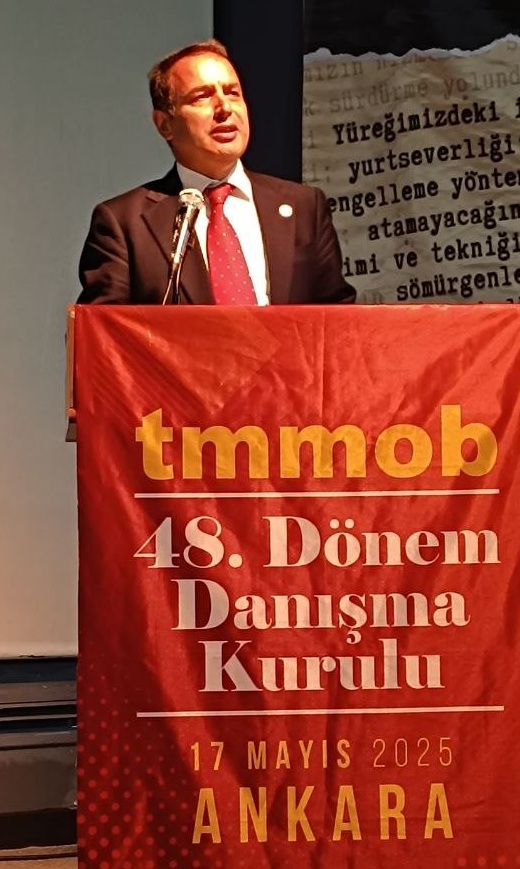 Ülkemizin ekonomik, sosyal ve siyasal anlamda çok zor günlerden geçtiği bir zaman dilimi içinde yapılan bu danışma kurulu toplantısını son derece anlamlı buluyorum. Saray iktidarının, kendisine muhalefet eden bütün demokratik kanalları kapatmak, tüm denge ve denetim mekanizmalarını yok etmek ve alternatif bütün oluşumları engellemek konusunda ne kadar ısrarlı olduğunu son iki aylık süreçte bir kere daha anlamış bulunuyoruz. İktidar, bir yandan bunları yaparken, bir yandan da tüm halkların özlemi olan barış hayalini sömürmekten geri durmuyor, her dönem olduğu gibi kendisine yeni “yetmez ama evetçiler” yaratmaya çalışıyor. “2023 ve 2024 seçimlerinde muhalefeti teröristlikle itham eden de sendin, altı ay önce kayyumları atayan da. Hala “kent uzlaşısı” iddianamesinde Kürtlerin büyükşehirlerde belediye meclis üyesi olarak kent yönetimine katılmasını bir suç gibi gösteren de senin emrindekiler” diyecek olanların, yani “Kral Çıplak” diyecek olanların en başında bizlerin yani TMMOB’un olacağını da çok iyi biliyor. Belediyelerin yetkilerinin kısıtlamanın, mali kaynaklarını yok etmenin hatta başkanların tek adam tarafından atanmasının dile getirildiği bu ortamda bir sonraki hedefin TMMOB olacağı ortada. Biz kendi mücadelemizi bunu her zaman göz önüne alarak sürdürmek, kadrolarımızı her an gündeme gelebilecek böyle bir girişim konusunda diri tutmak durumundayız.